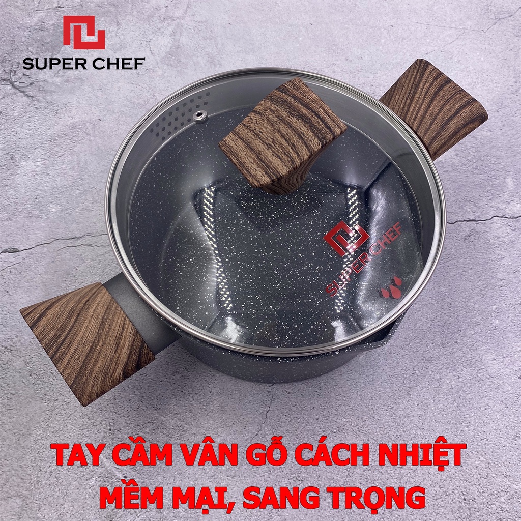 [Mã BMBAU50 giảm 7% đơn 99K] Nồi Vân Đá Đáy Từ Super Chef Dày 4mm Siêu Bền Bỉ, Sang Trọng Kèm Nắp Kính ( 20-24cm)