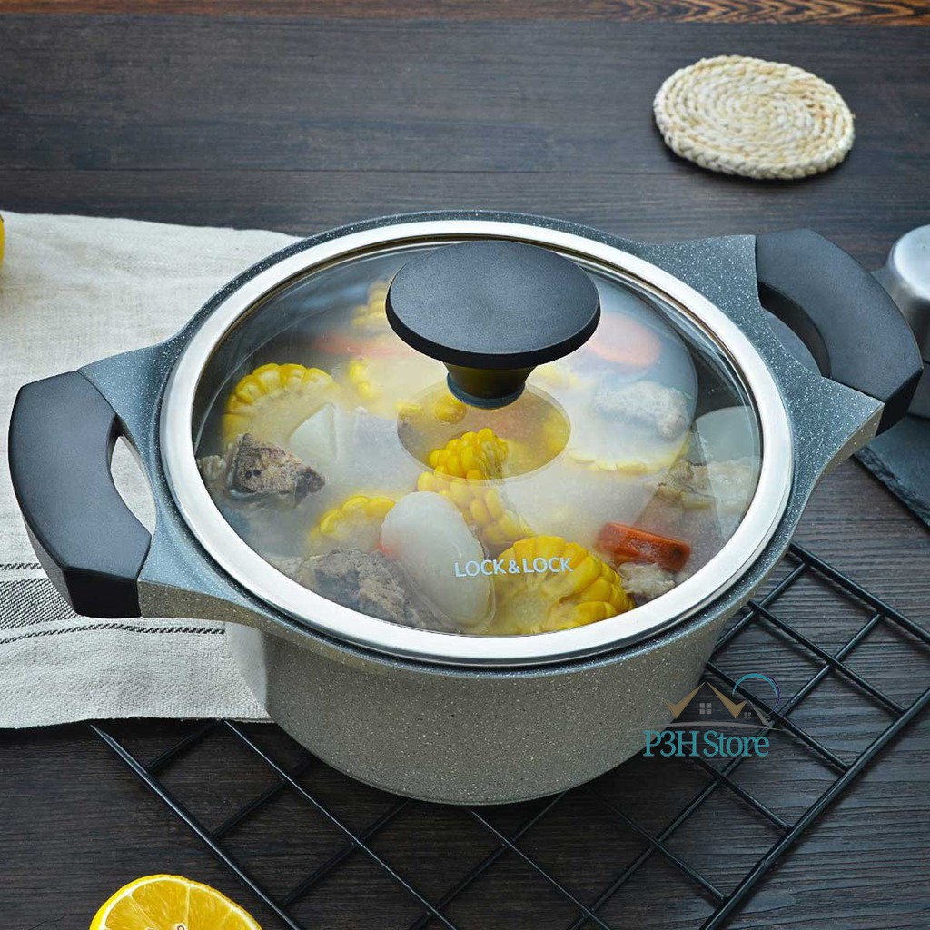 Nồi vân đá loại to nồi luôc gà Lock&Lock dòng Stone 7 lớp 24cm LCA6244D-IH