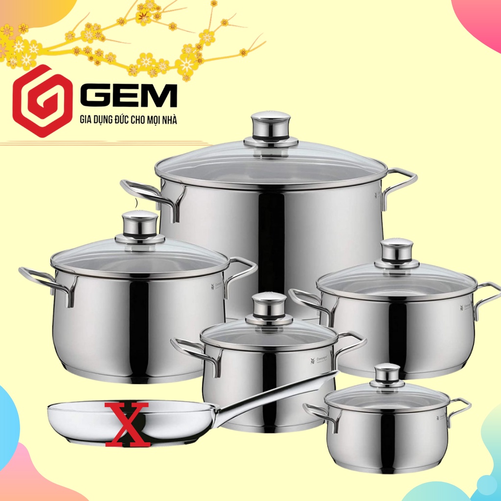 Bộ nồi từ CAO CẤP nội địa Đức - WMF DIADEM PLUS 5 món - SANG TRỌNG - ĐẲNG CẤP - TIỆN DỤNG - BỀN ĐẸP với thời gianBỘ 5 nồi đều có nắp vung với nhiều nồi cỡ nhỏ thường xuyên được sử dụng - CỰC KỲ TIỆN ÍCH - nồi to nhất dung tích lên tới 6,5L - LUỘC GÀ THOẢI MÁI