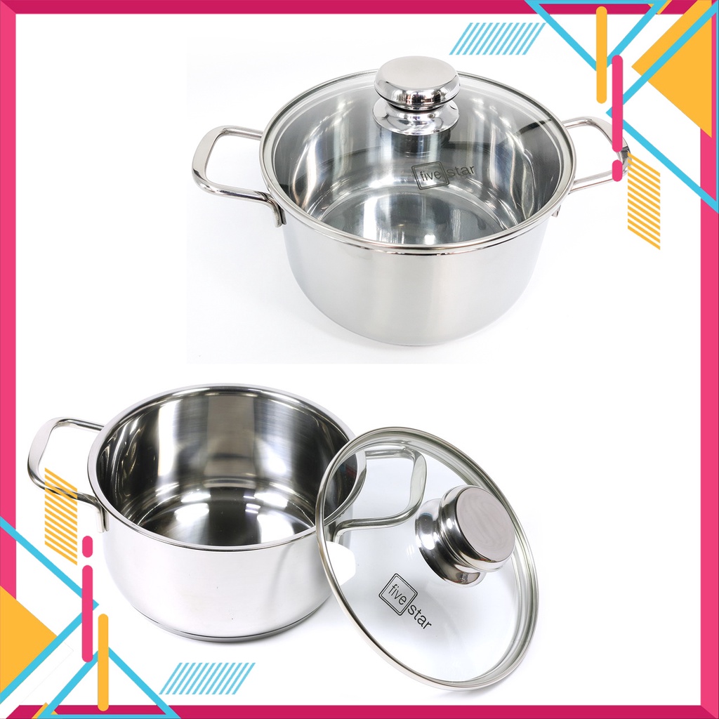 Nồi xoong Fivestar bếp từ inox 3 đáy vung kính 20CM/16CM [Dày bắt nhiệt tốt]