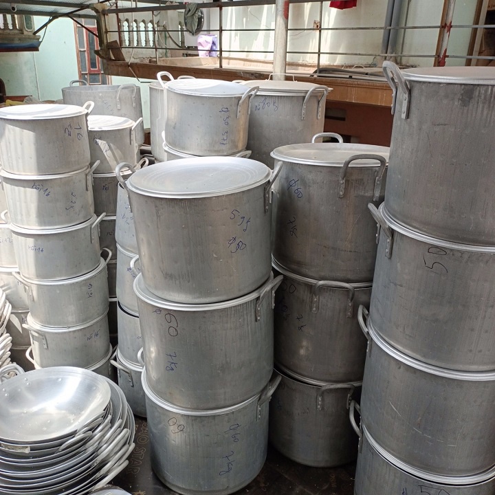 - Nồi xoong nhôm quân dụng công nghiệp Được gò thủ công, dày dặn bền đẹp tiết kiệm chi phí.