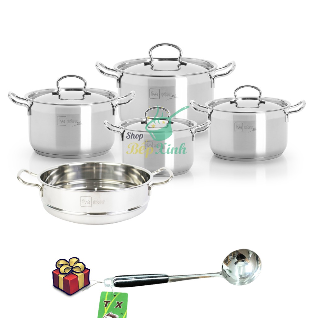Nhà cửa & Đời sống > Dụng cụ nhà bếp > Nồi || Bộ nồi xửng cao cấp 3 đáy inox 304 FiveStar Plus vancover bếp từ nắp inox(1 N16cm x1N18cmx1 N20cm x1 N24cmx1xửng24cm )Còn hàng