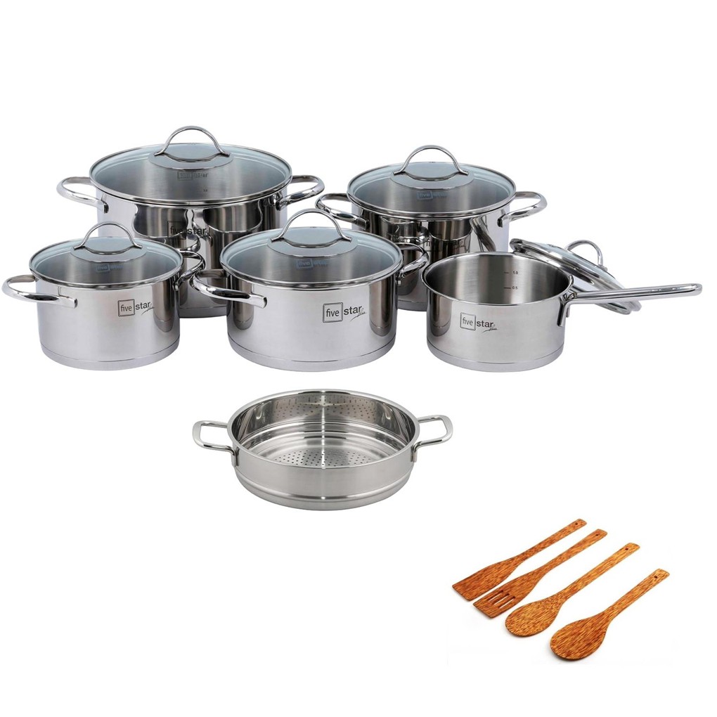 Bộ nồi xửng cao cấp Fivestar 6 món 3 đáy từ nắp kính , tặng bộ sạn dừa 4 món