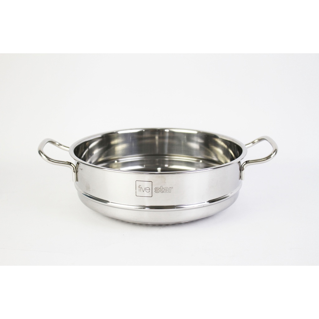Bộ nồi xửng chảo 3 đáy inox 430 cao cấp FiveStar Standard 6 món bếp từ nắp kính tặng 5 muỗng inoxMột sự kết hợp hoàn hảo và tiện dụng , vừa có chảo để chiên xào, khi kết hợp với thân xửng 24 va nồi 24cm để có 1 bộ xửng 24 cm để hấp các món ăn.