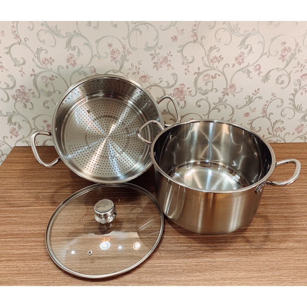 Bộ nồi xửng hấp 3 đáy inox 430 cao cấp FiveStar Standard bếp từ nắp kính ( 28cm)Nồi được cấu tạo inox 430 an toàn cho sức khỏe , giữ nhiệt tốt giúp thức ăn chín đều