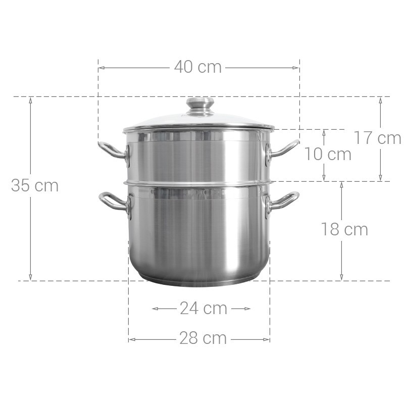 .Nồi có dường kính 28cm , chiều cao nồi 19.5cm, dung tích 11.5 lit nước