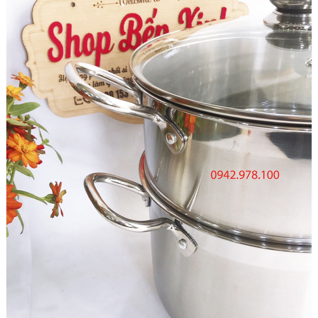 Bộ nồi xửng hấp 3 đáy inox 430 cao cấp FiveStar Standard bếp từ nắp kính ( 28cm)