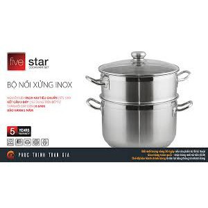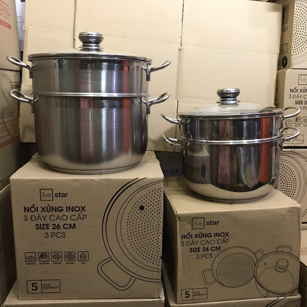 Bộ nồi xửng hấp cao cấp Shop Tiện Ích Bộ nồi Inox 3 đáy Fivestar 24cm nắp kính dùng bếp từ