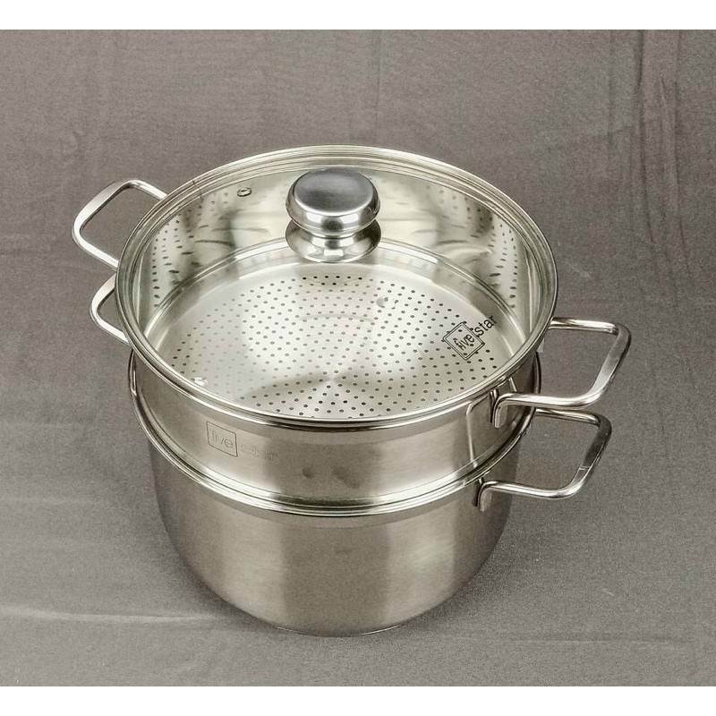 Bộ nồi xửng hấp cao cấp Inox 3 đáy Fivestar 24,26,28cm nắp kính dùng bếp từ