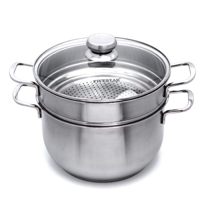 Bộ nồi xửng hấp cao cấp Inox 3 đáy Fivestar 24,26,28cm nắp kính dùng bếp từ (DT.12.310.450.560.32)- Bộ nồi được làm từ chất liệu inox cao cấp nhập khẩu từ Hàn Quốc, bóng đẹp, có độ bền cao, độ dày 8cm theo tiêu chuẩn Quốc Tế.