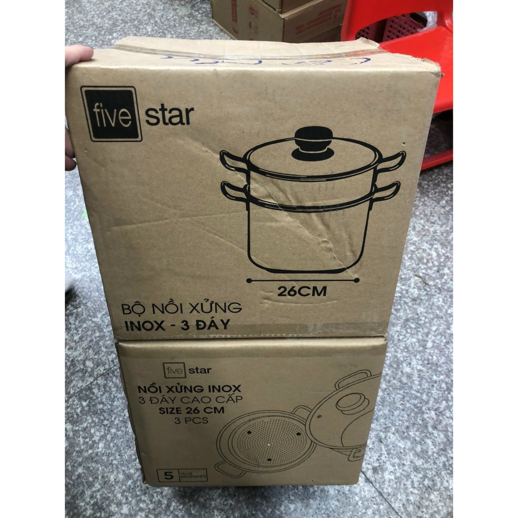 Nhà cửa & Đời sống > Dụng cụ nhà bếp > Nồi || Bộ nồi xửng hấp cao cấp Inox 3 đáy Fivestar 24,26,28cm nắp kính dùng bếp từCòn hàng