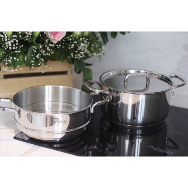 Nhà cửa & Đời sống > Dụng cụ nhà bếp > Nồi || Bộ nồi xửng hấp cao cấp inox 304 bếp từ 3 đáy Fivestar Plus 20cm nắp inox , tặng 10 đôi đũa dừaCòn hàng