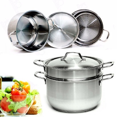 - Bộ nồi bao gồm: 1 nồi, 1 xửng hấp, 1 nắp thủy tinh đường kính tương ứng các sz nồi