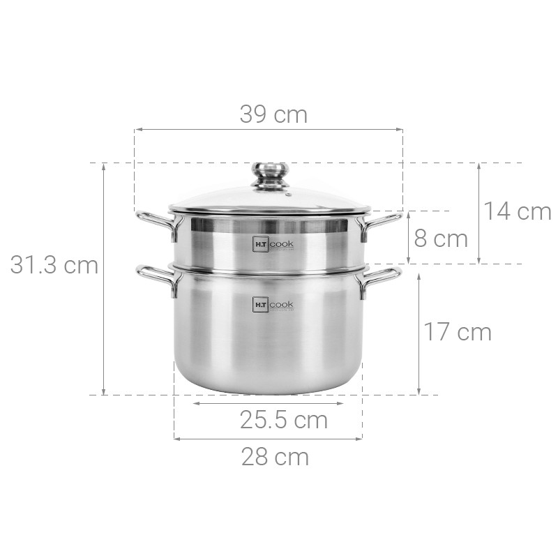Bộ nồi Xửng hấp HT Cook 28cm vung kính