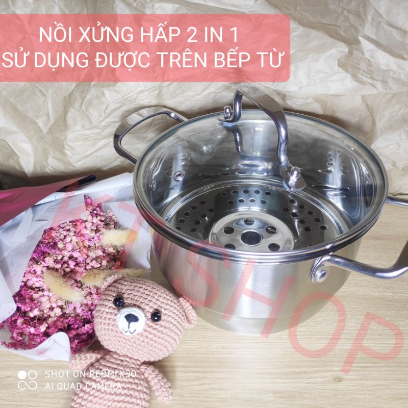 NỒI (Xửng) hấp inox 2 in 1(SỬ DỤNG ĐƯỢC BẾP ĐIỆN TỪ)