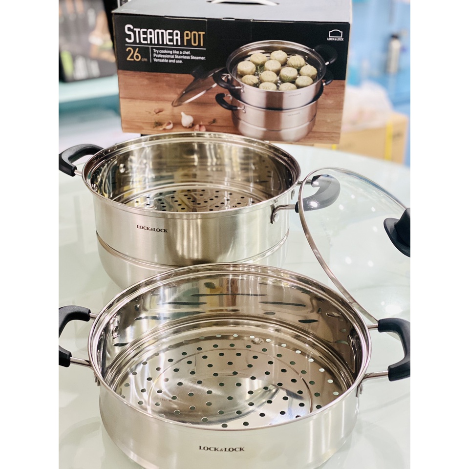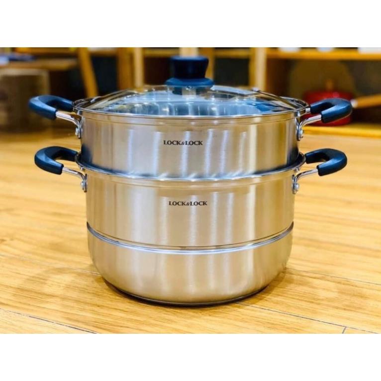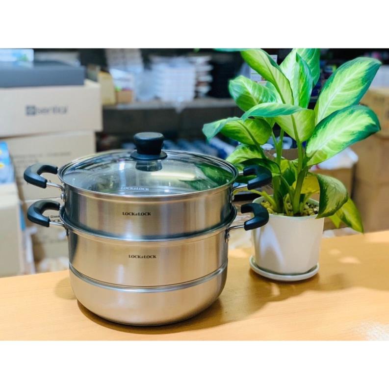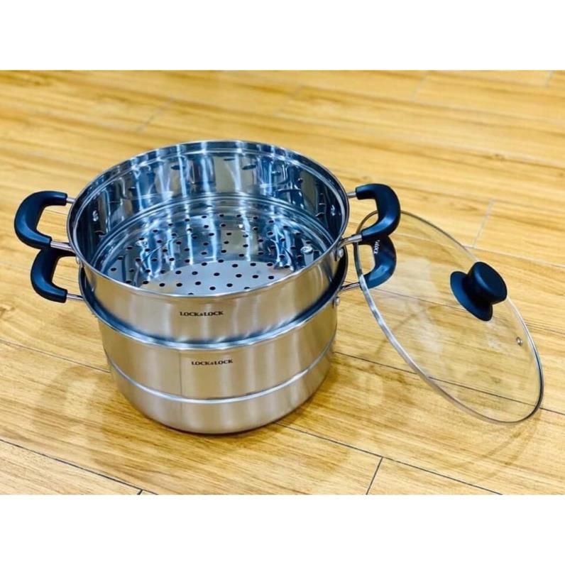 Bộ nồi xửng hấp inox 2 tầng Lock&Lock 26cm đáy 3 lớp dùng được bếp từ- HÀNG CHÍNH HÃNG