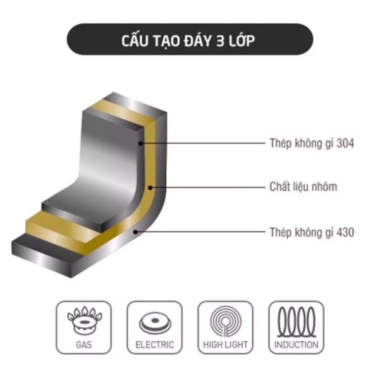 👉 Chất liệu inox 430. Dùng được bếp từ.