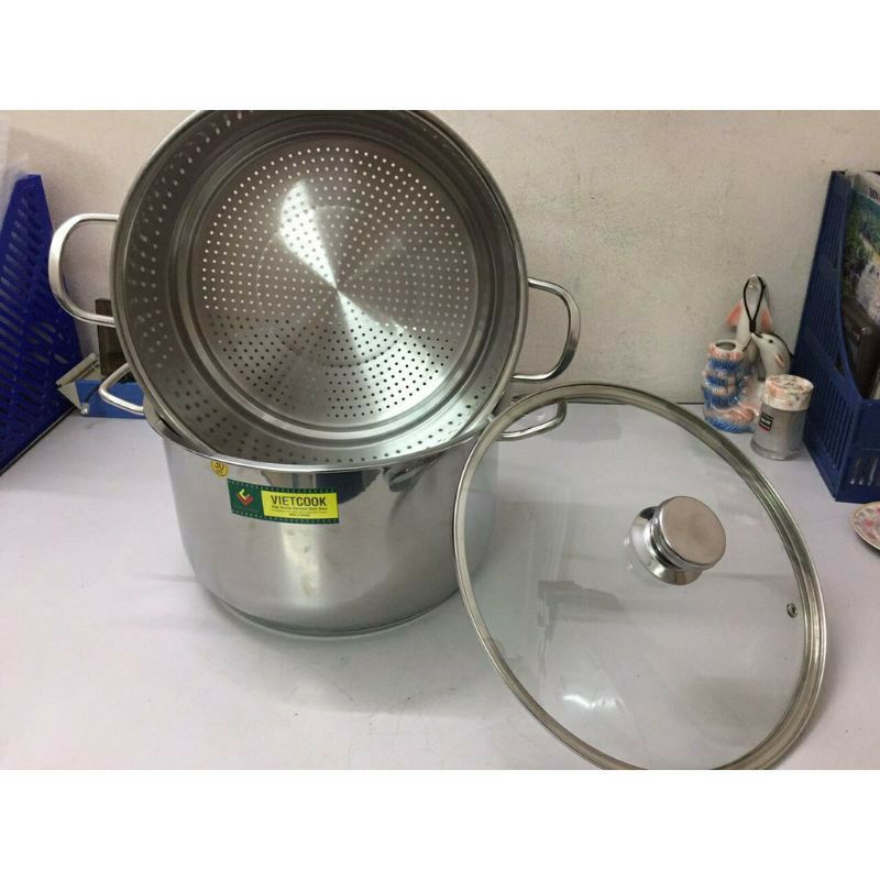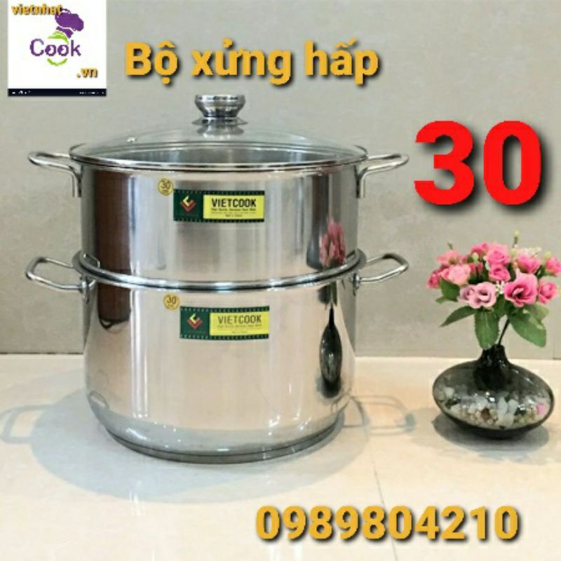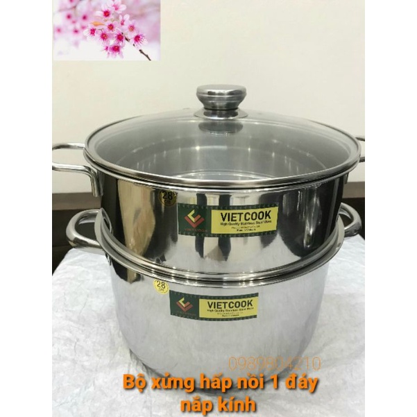 Nhà cửa & Đời sống > Dụng cụ nhà bếp > Nồi || Bộ nồi xửng hấp inox 2 tầng nắp kính và nắp inox đun bếp từ Vietcook size 24,26,28,30,32 ,Xửng chõ hấp bánh đồ xôiCòn hàng
