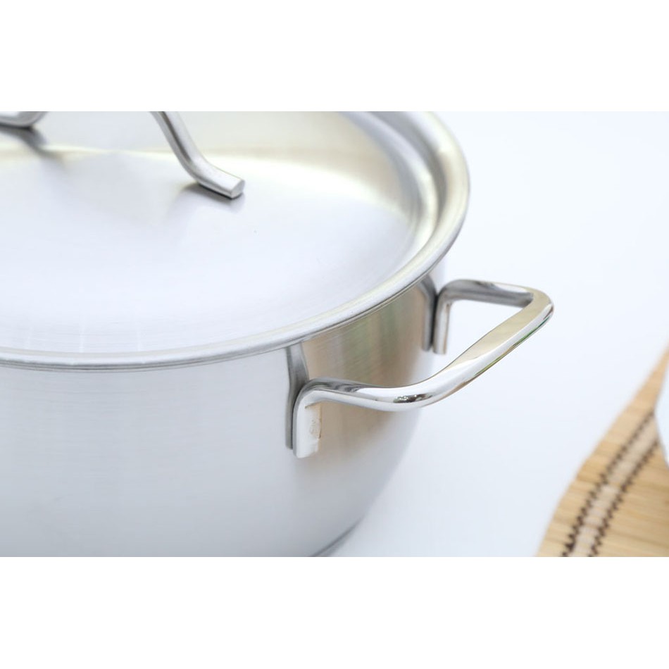 Sản xuất bằng nguyên liệu inox 430 - loại inox không bị oxy hoá, có thể sử dụng lâu dài an toàn cho sức khoẻ, thu nhiệt nhanh, toả nhiệt đều giúp đun nấu nhanh, tiết kiệm nhiên liệu (gas, điện,...), duy trì độ sáng bóng một cách lâu bền và luôn đẹp như mới và bảo đảm vệ sinh an toàn thực phẩm.