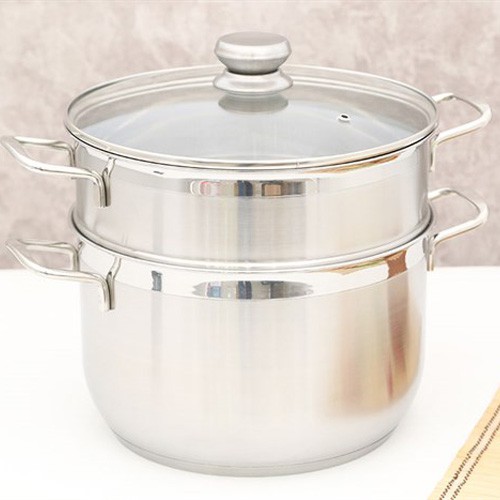 - Bộ nồi bao gồm: 1 nồi đường kính 26cm, 1 xửng hấp đường kính 26cm, 1 nắp thủy tinh đường kính 26cm.