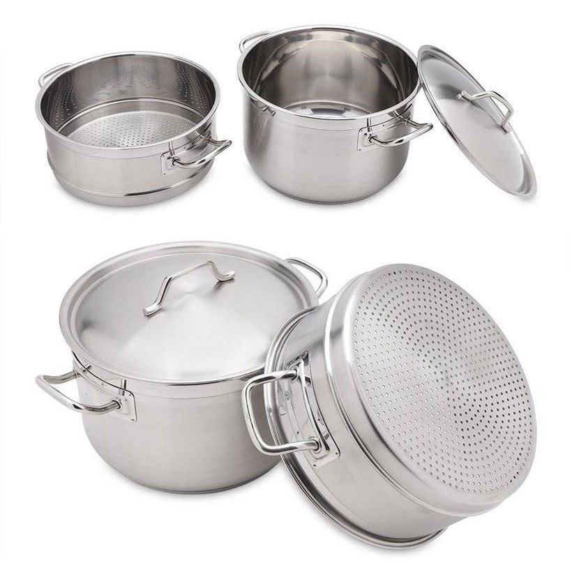 - Bộ nồi bao gồm: 1 nồi đường kính 28cm, 1 xửng hấp đường kính 28cm, 1 nắp Inox đường kính 28cm.