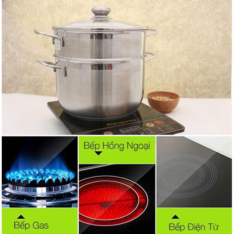 -Nồi inox sử dụng nấu ăn được trên bếp từ, bếp hồng ngoại, bếp gas