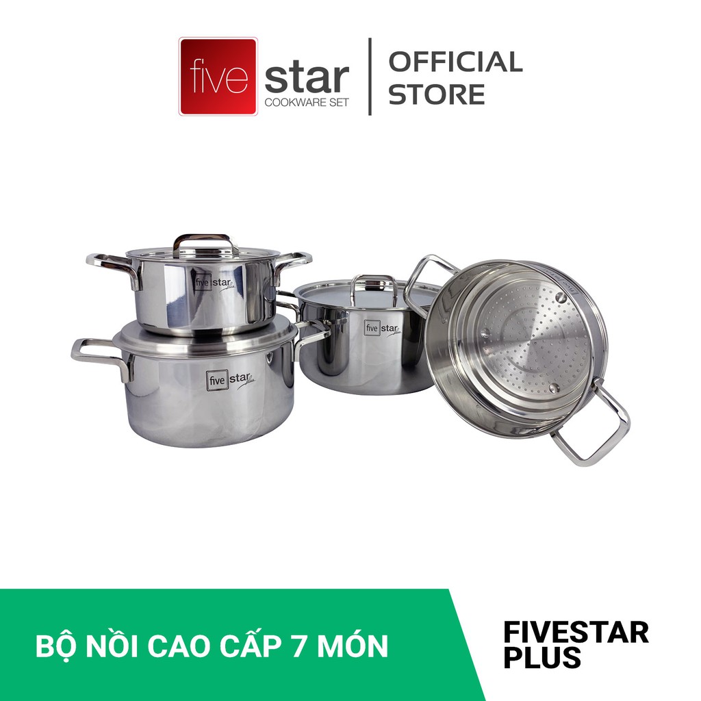 Nhà cửa & Đời sống > Dụng cụ nhà bếp > Nồi || Bộ nồi xửng hấp inox 304 cao cấp Fivestar Plus 3 lớp đúc liền 4 chiếc nắp inoxCòn hàng