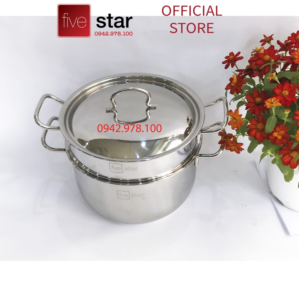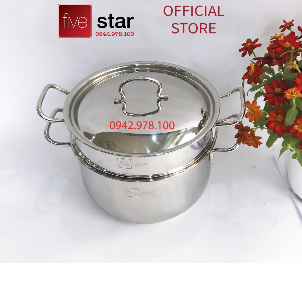 Bộ nồi xửng hấp inox 430 Fivestar Standard 3 đáy bếp từ nắp inox ( 24cm / 26cm ), tặng 2 vá canh