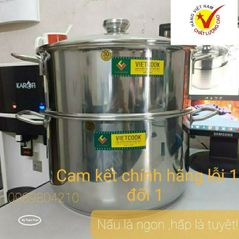 Hàng vn Vietcook, inox chuẩn trắng sáng Thiết kế châu Âu, chắc chắn với đáy 3 lớp giúp hấp thu nhiệt nhanh.Tiết kiệm thời gian và nhiên liệu.