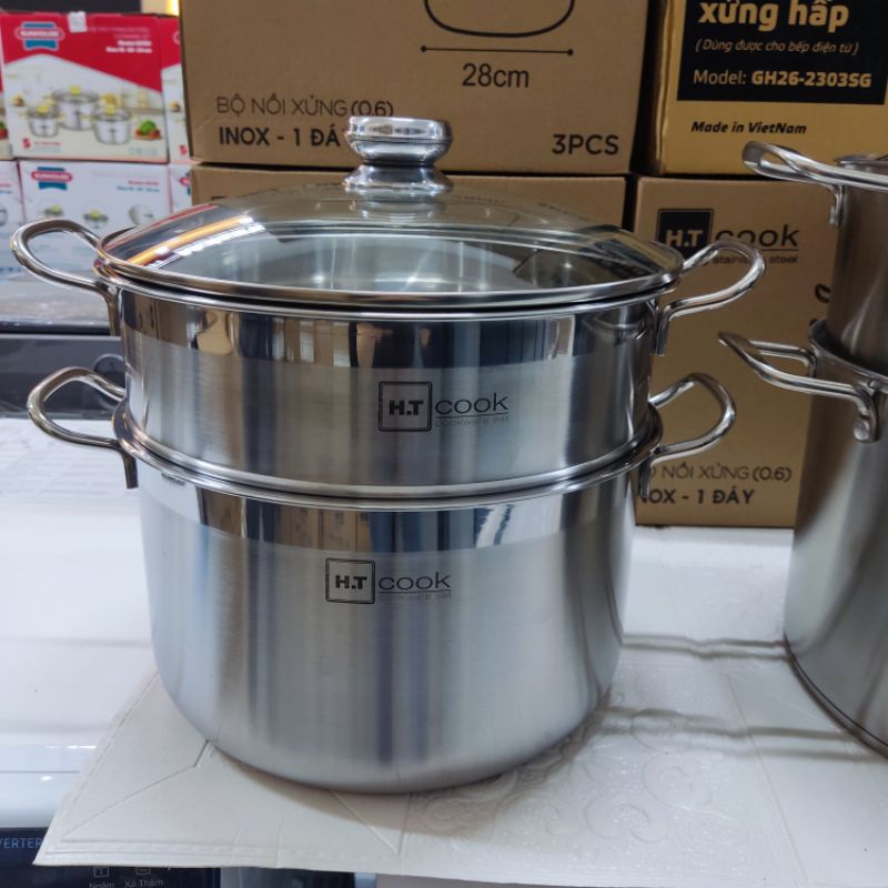 Bộ nồi xửng hấp,kiêm luộc gà GOLDSUN 3 đáy size30 GH26-2303SG,HT COOK 1 đáy size 28 hàng chính hãng giá rẻ