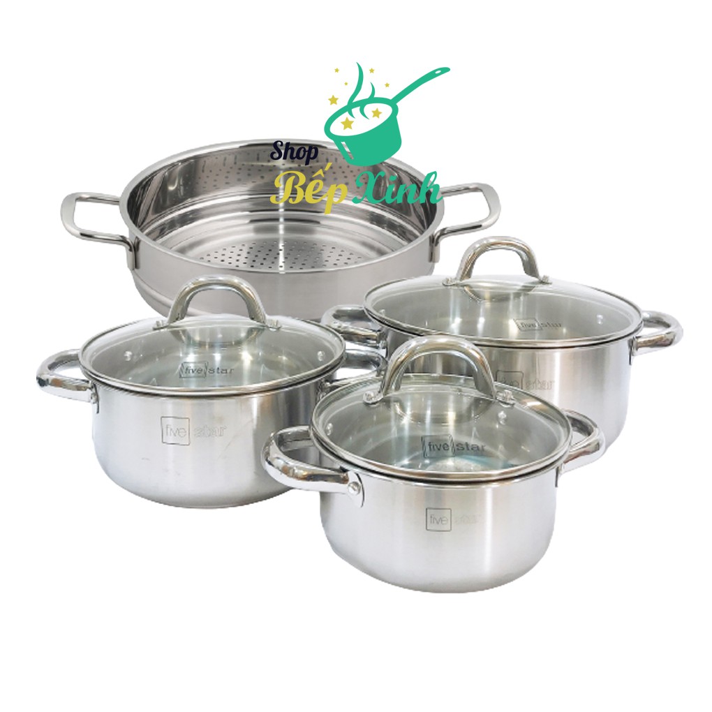 Nhà cửa & Đời sống > Dụng cụ nhà bếp > Nồi || Bộ nồi xửng inox Fivestar 3 đáy sandwich từ 4 món nắp kínhCòn hàng