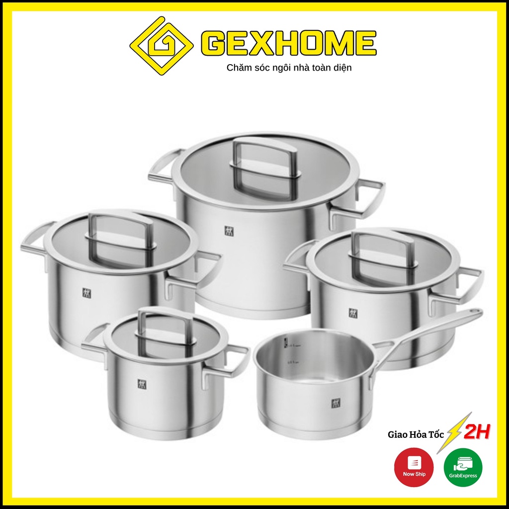 Bộ nồi Zwilling Vitality 5 món vung kính chất liệu thép không gỉ 18/10 [nhập Đức chính hãng]