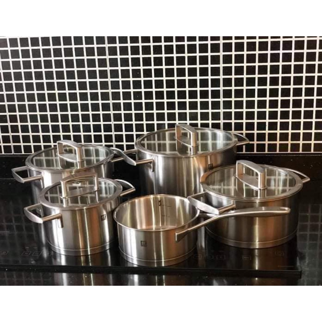Bộ nồi Zwilling Vitality 5 món vung kính [nhập Đức chính hãng]Bộ nồi được làm hoàn toàn từ thép không gỉ 18/10