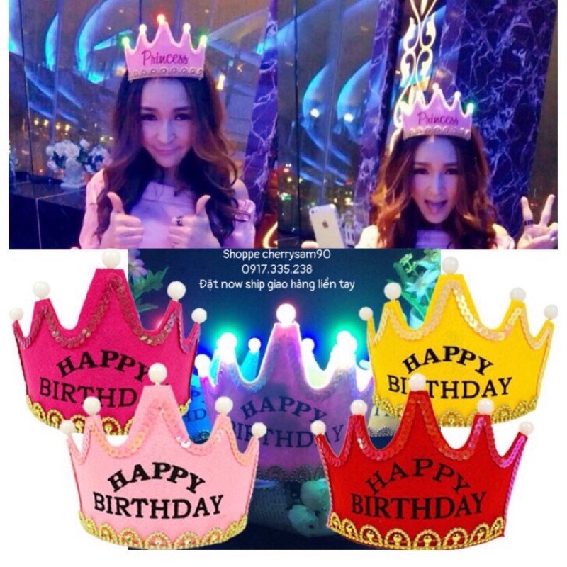Nón Vương Miện Có đèn led Chữ HPBD vương miện