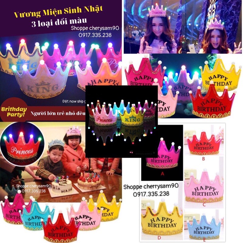 Nhà cửa & Đời sống > Trang trí nhà cửa > Khác || Nón Vương Miện Có đèn led Chữ HPBD vương miệnCòn hàng