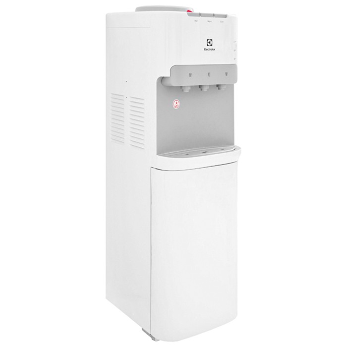 Cây nước nóng lạnh Electrolux màu trắng thanh nhã, kết cấu bền chắc, hiện đại, tăng tính thẩm mỹ cho không gian sử dụng