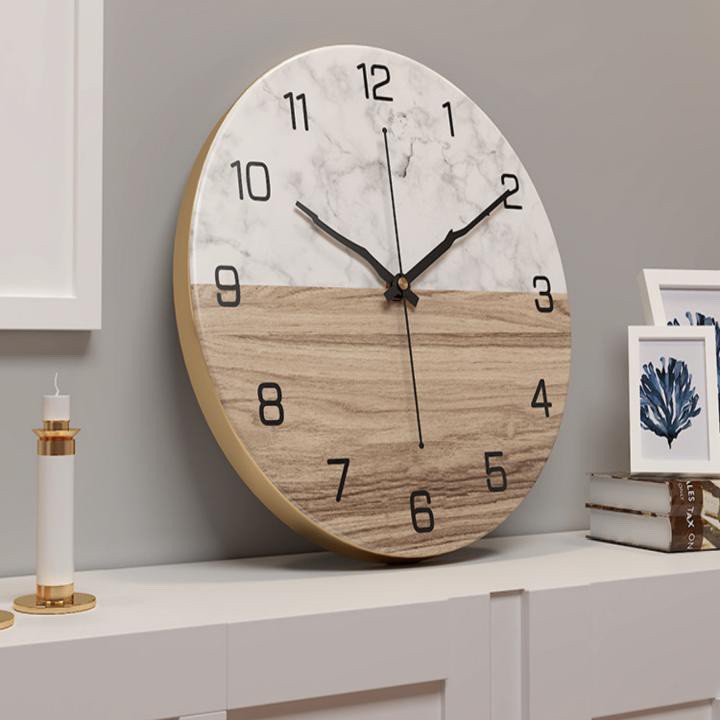 Đồng Hồ trang trí nhà cửa Nordic Marble Wall ClockĐồng Hồ trang trí cao cấpĐã từ lâu, đồng hồ xuất hiện và trở thành người bạn đồng hành trong cuộc sống mọi người. Tuy nhiên, theo nhu cầu của cuộc sống ngày càng phát triển, ngoài chức năng chính là xem giờ thì nay đã có thêm nhiều lợi ích khác như trở thành quà tặng, vật trang trí, tô điểm cho không gian sống thêm sinh động và sang trọng. Vật liệu: Gỗ