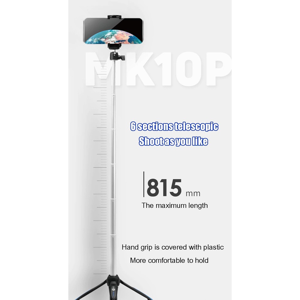 Điện Thoại & Phụ Kiện > Phụ kiện > Phụ kiện selfie > Điều khiển chụp hình || [Now ship] Gây chụp hình MK10P - có chân tripod và remote (kết nối bluetooth)Còn hàng