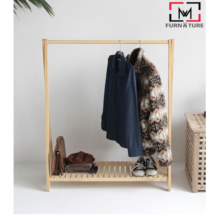 Nhà cửa & Đời sống > Dụng cụ chăm sóc nhà cửa > Dây phơi & giá phơi quần áo || Now ship - Giá treo quần áo một tầng size 100x38x125 cm màu gỗ thương hiệu MW FURNITURE - Nội thất căn hộCòn hàng