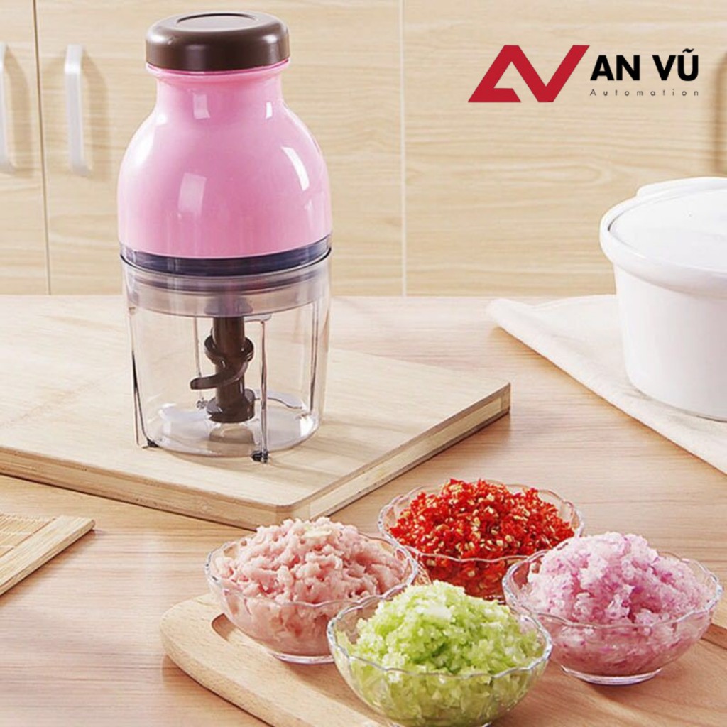 👉 Cối nhựa, 2 tầng lưỡi thép không gỉ.