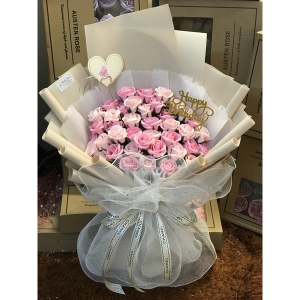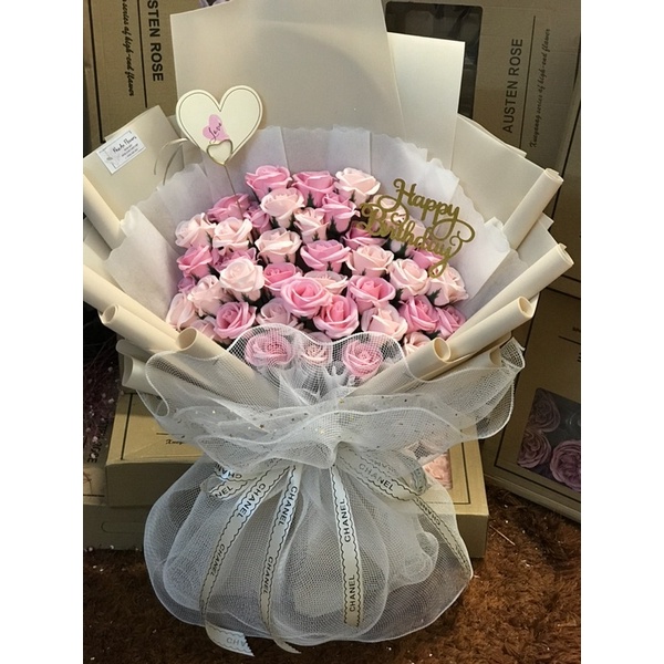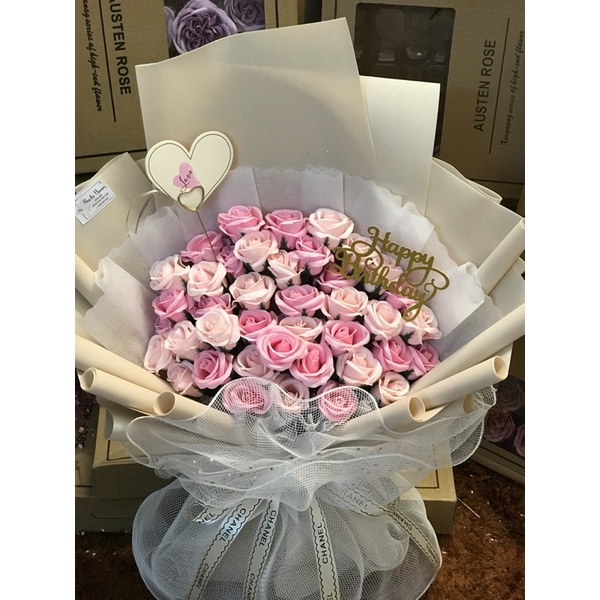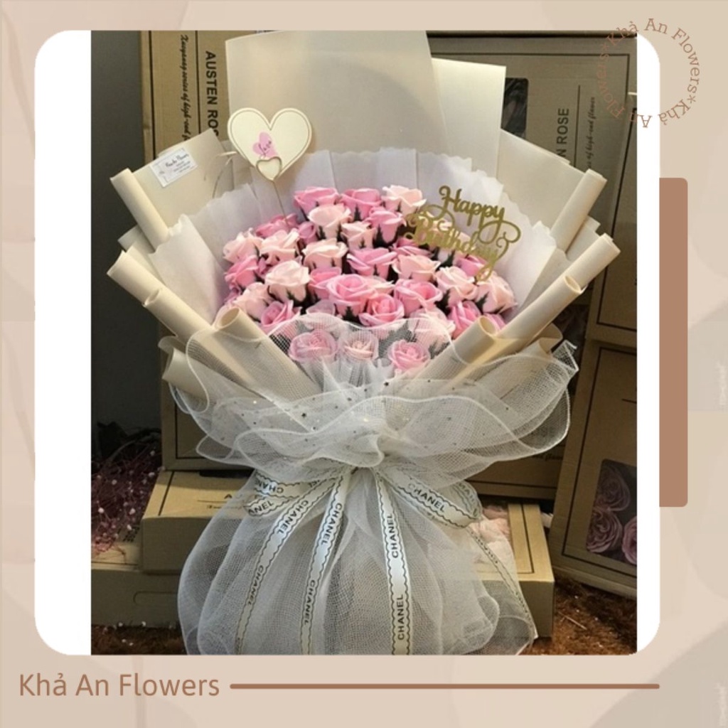 [Nowship] Bó hoa Sáp 40 bông, hoa 4 lớp cao cấp. KT 70x50cm. Ảnh thật nhà Khả An