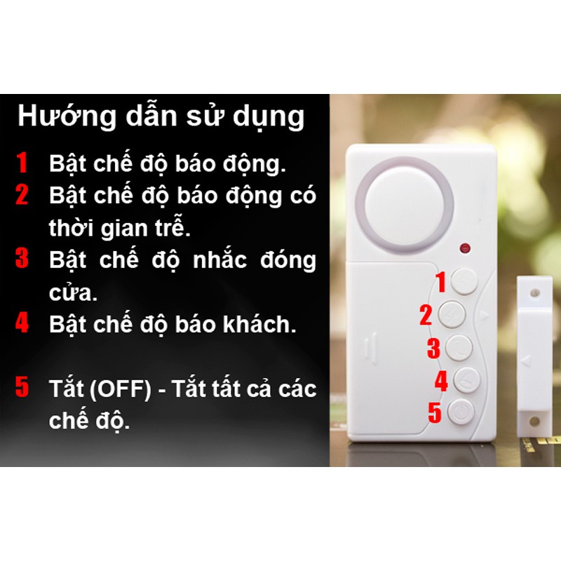 - Có 3 chức năng: Báo động, báo khách, chế độ nhắc đóng cửa