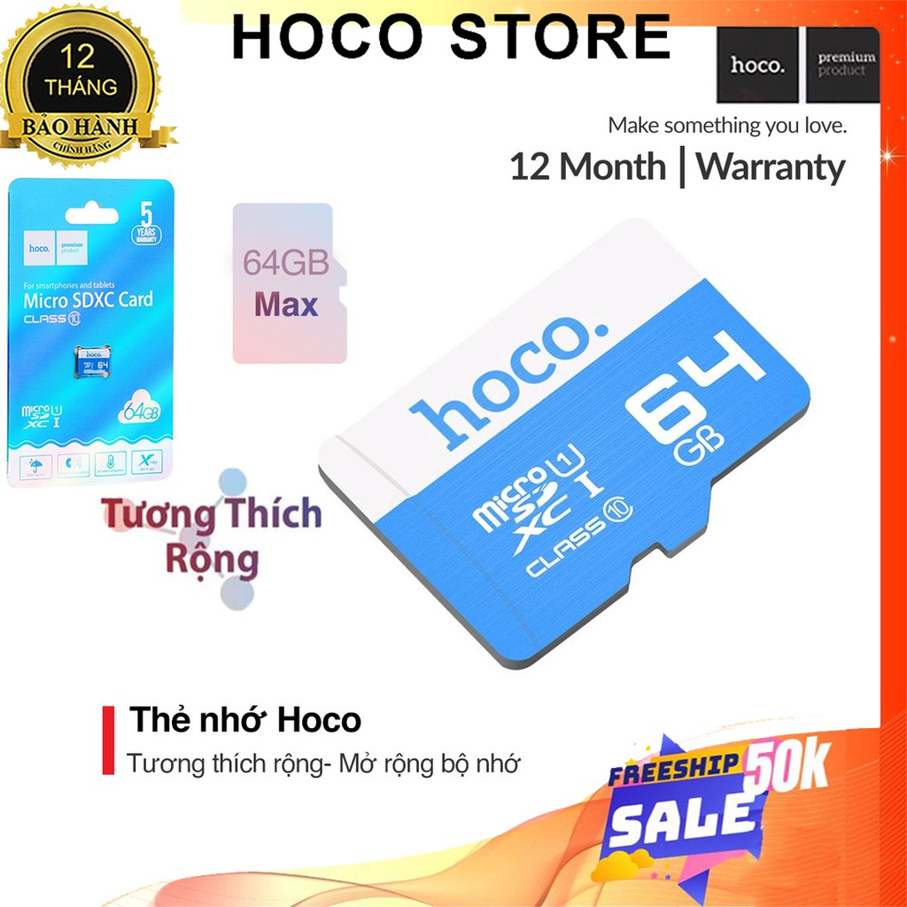 Thẻ nhớ Hoco 64Gb 32Gb 16Gb chuyên dụng cho CAMERA, Điện thoại, Máy ảnh, Loa,Tai Nghe ...