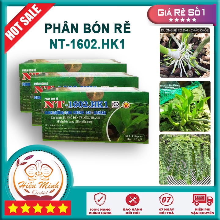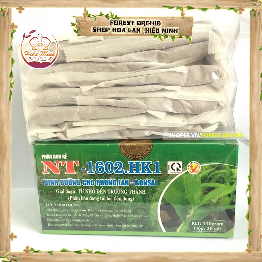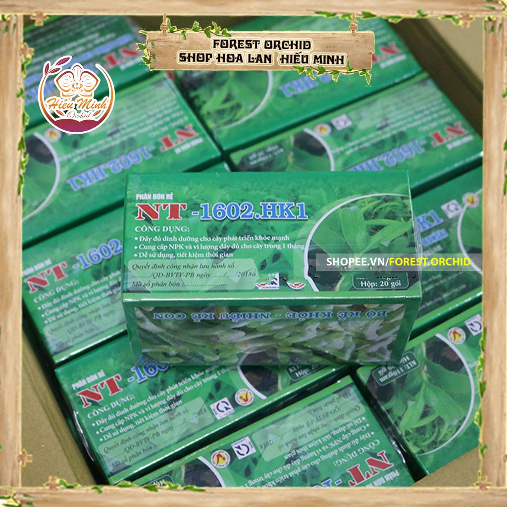 NT 1602-HK1 Dinh dưỡng cho Hoa Phong Lan, ( Hộp=20 túi nhỏ)Phân bón dinh dưỡng cho Lan HVP 1602.HK1 cung cấp chất dinh dưỡng đầy đủ hợp lý cho cây phát triển BỘ RỂ khỏe mạnh nhiều rể non. Dinh dưỡng cho Lan HVP 1602.HK1 được sử dụng cho Lan giai đoạn từ lúc bé tới lúc trưởng thành. Tiết kiệm thời gian chăm sóc, hiệu quả cao.