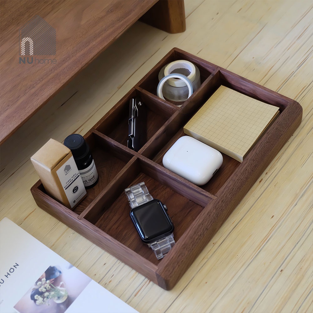 nuhome.vn | Khay gỗ đựng mỹ phẩm phụ kiện để bàn Hami, khay gỗ tự nhiên để đồ tiện dụng ngăn nắp đặt bàn
