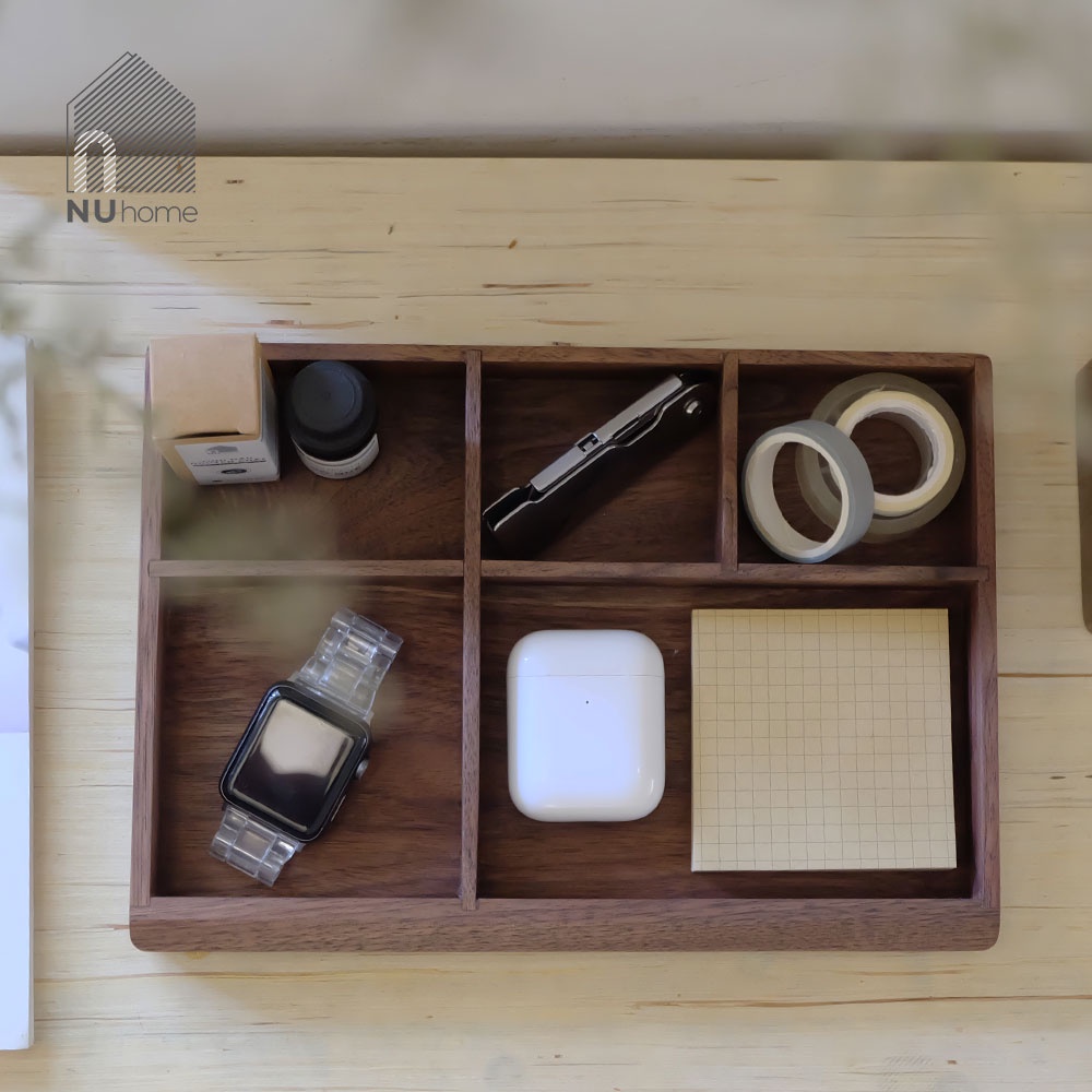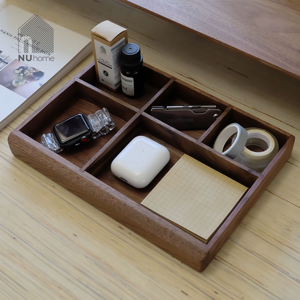 Giới thiệu nuhome.vn | Khay gỗ đựng mỹ phẩm phụ kiện để bàn Hami, khay gỗ tự nhiên để đồ tiện dụng ngăn nắp đặt bàn