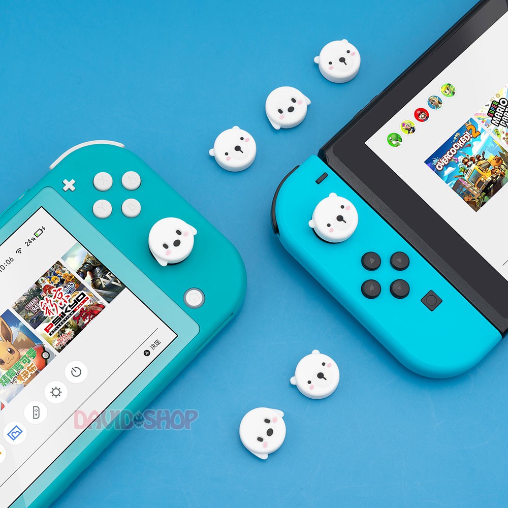 Bộ núm bọc cao cấp gồm 4 cái (2 cặp) bề mặt hình Gấu Trắng & Chó Trắng nổi cực đẹp, dùng bảo vệ bề mặt analog của tay cầm Joy-Con, tăng độ bám khi sử dụng.✔ Tương thích: Nintendo Switch Lite, Nintendo Switch