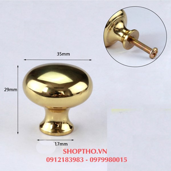 Núm kéo cho cánh tủ, cánh ngăn kéo tròn màu vàng đường kính 35mm*** Chất liệu : kim loại mạ cao cấp