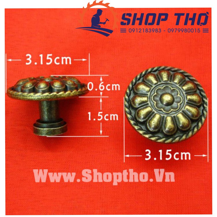 Núm kéo giả cổ màu đồng, màu vàng nhiều mẫu mã ST01Núm kéo chất liệu hợp kim mạ mầu đồng sẫm, thiết kế hình hoa mai rất đẹp để trang trí cho các sản phẩm nội thất, tủ, bàn, ngăn kéo.