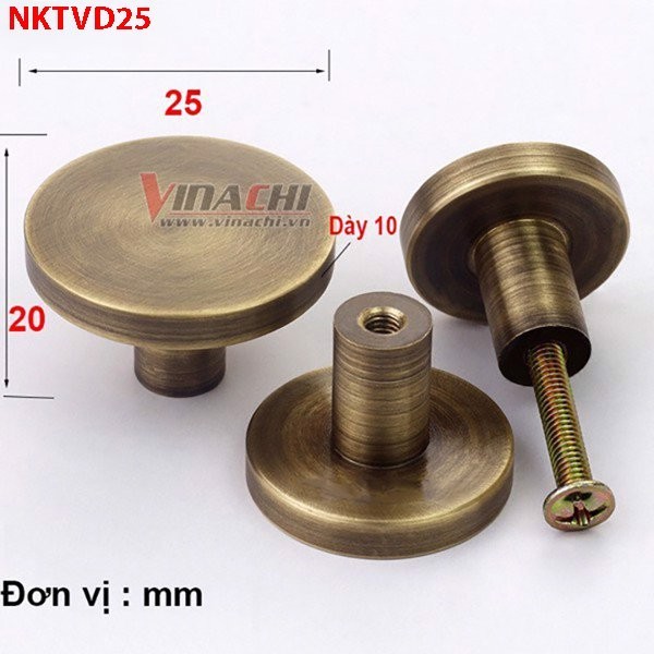 - Núm kéo tròn vàng đồng chuyên dụng sản xuất đồ nội thất, dùng làm tay nắm ngăn kéo tủ, bàn, hộp dụng cụ.